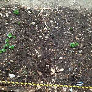 先日仕込みがされた畑から芽がでてきたようです。